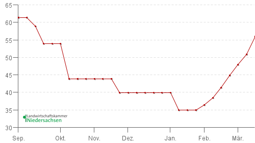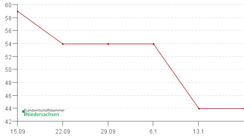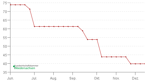 Ab-Hof-Ferkelpreisnotierung für Ring-/Qualitätsferkel der Landwirtschaftskammern Niedersachsen und Nordrhein-Westfalen. Die Nord-West-Notierung ist rückbezüglich definiert.