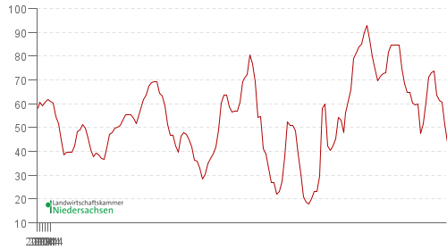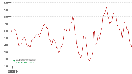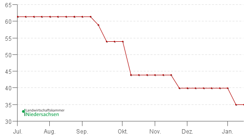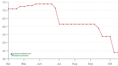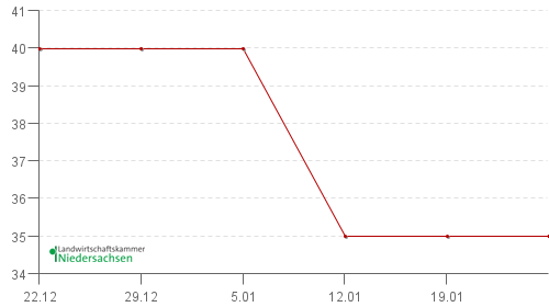Ferkelpreis der Vereinigung der Erzeugergemeinschaften für Vieh und Fleisch (VEZG). Die Notierung ist bezogen auf den aktuellen Trend am Feststellungstag und berücksichtigt die voraussichtliche weitere Entwicklung.